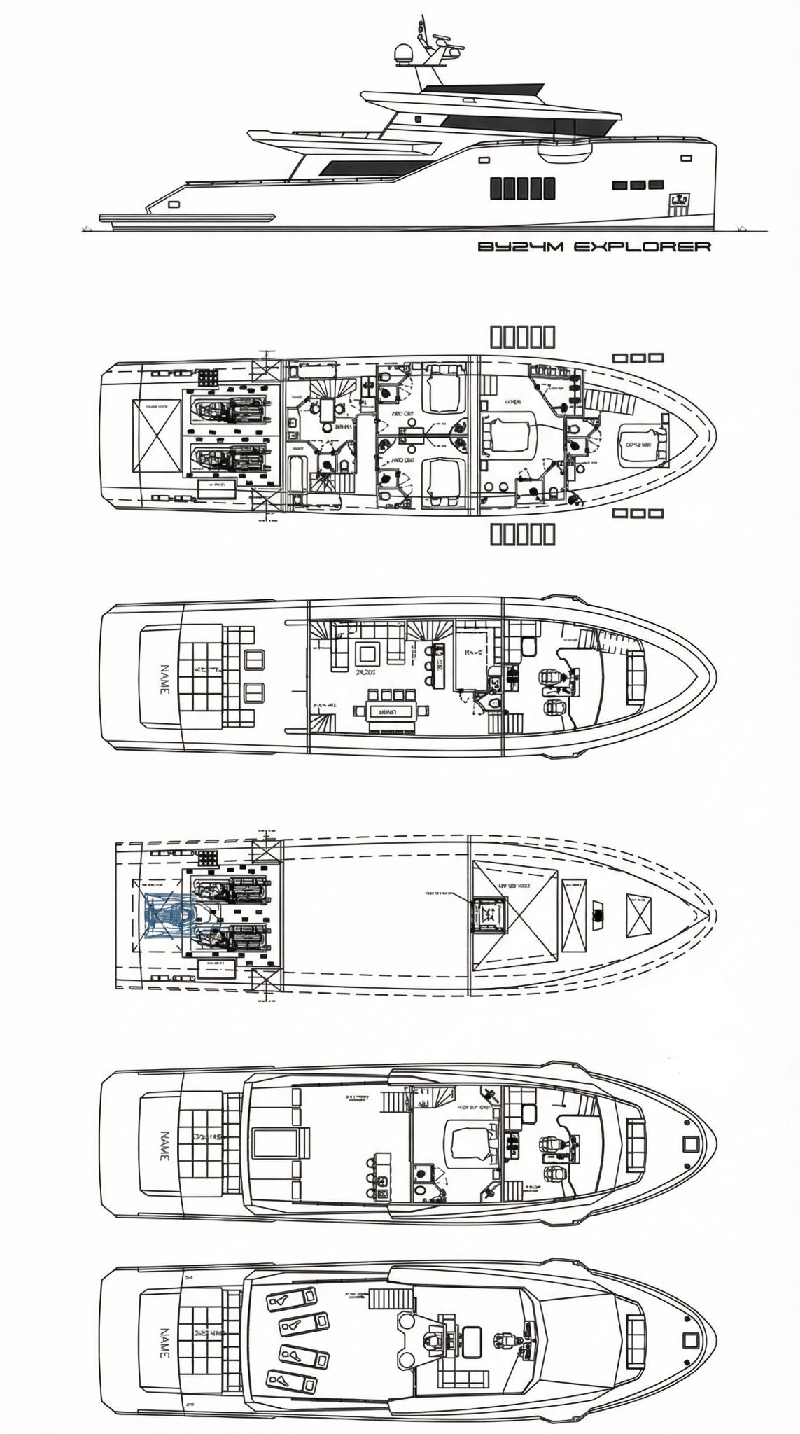 The BY24M Explorer is available with various interior layouts. The yacht offers extensive customization possibilities, allowing owners to configure accommodation and functional spaces according to mission profile—whether focused on private cruising, long-range family voyages, or professional expedition use. Comfortable living arrangements accommodate up to eight guests plus crew, with thoughtfully designed cabins and shared areas that prioritize practicality, privacy, and long-term onboard comfort.