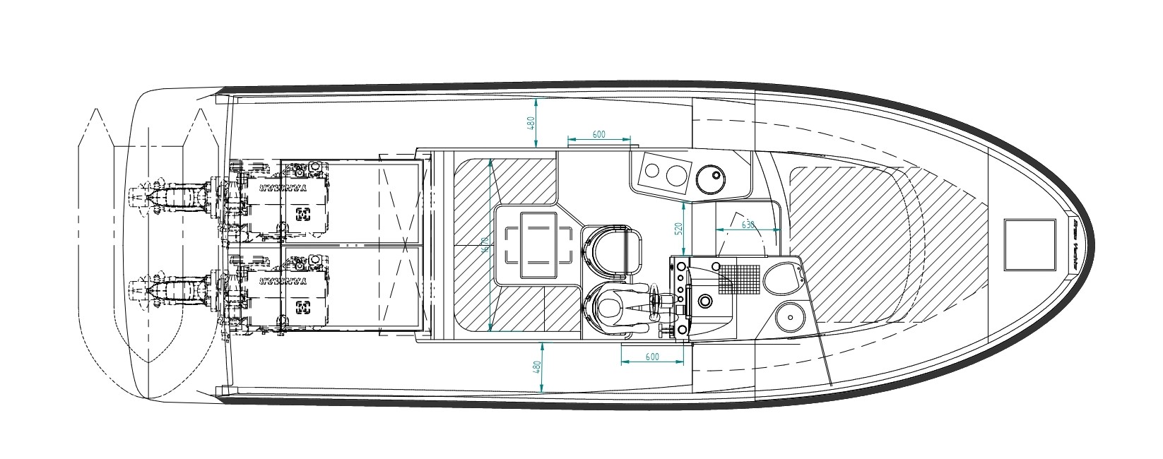 | Engines Outboard | 2 x Mercury Verado V8-300 or V10-400 |