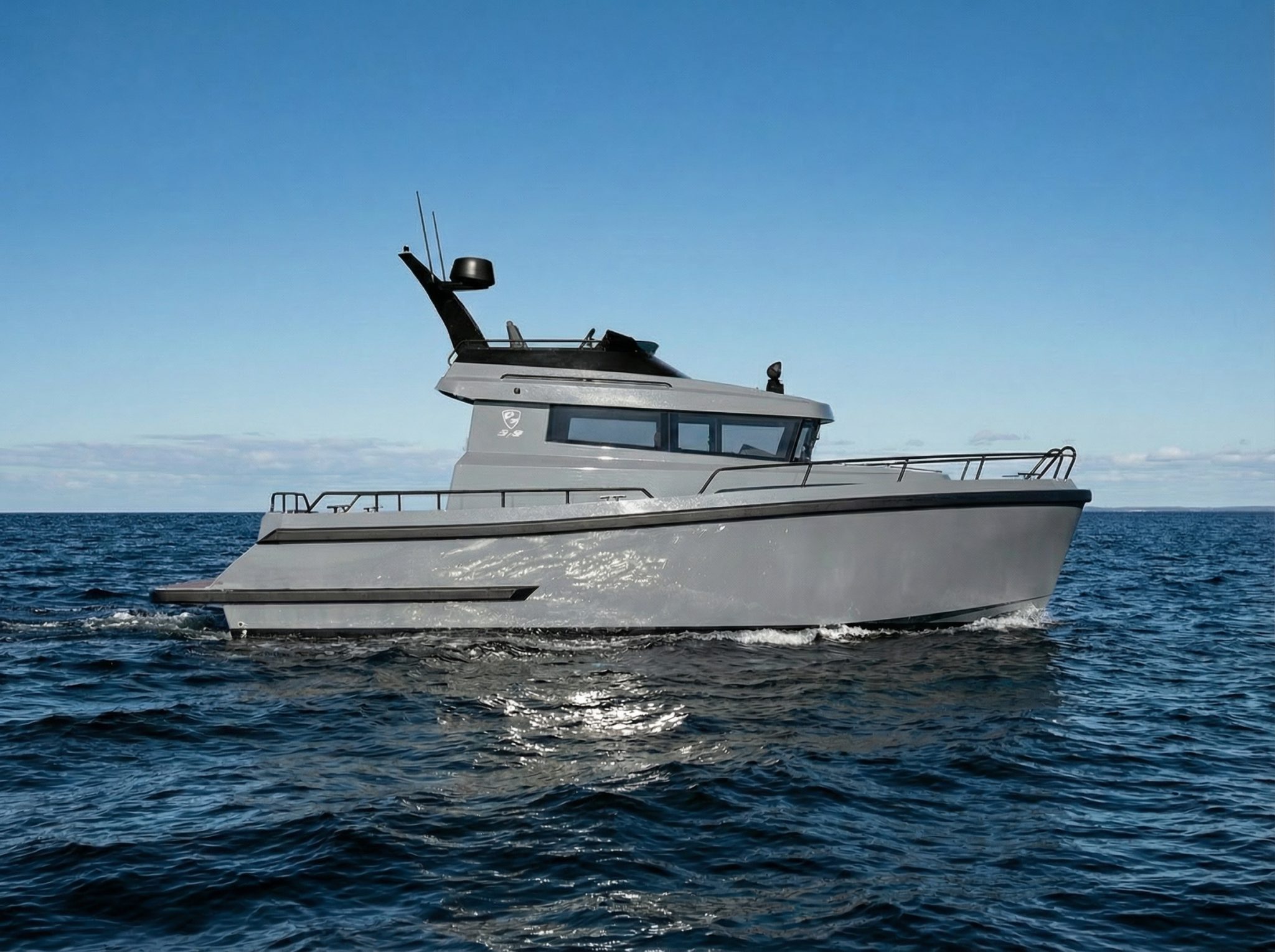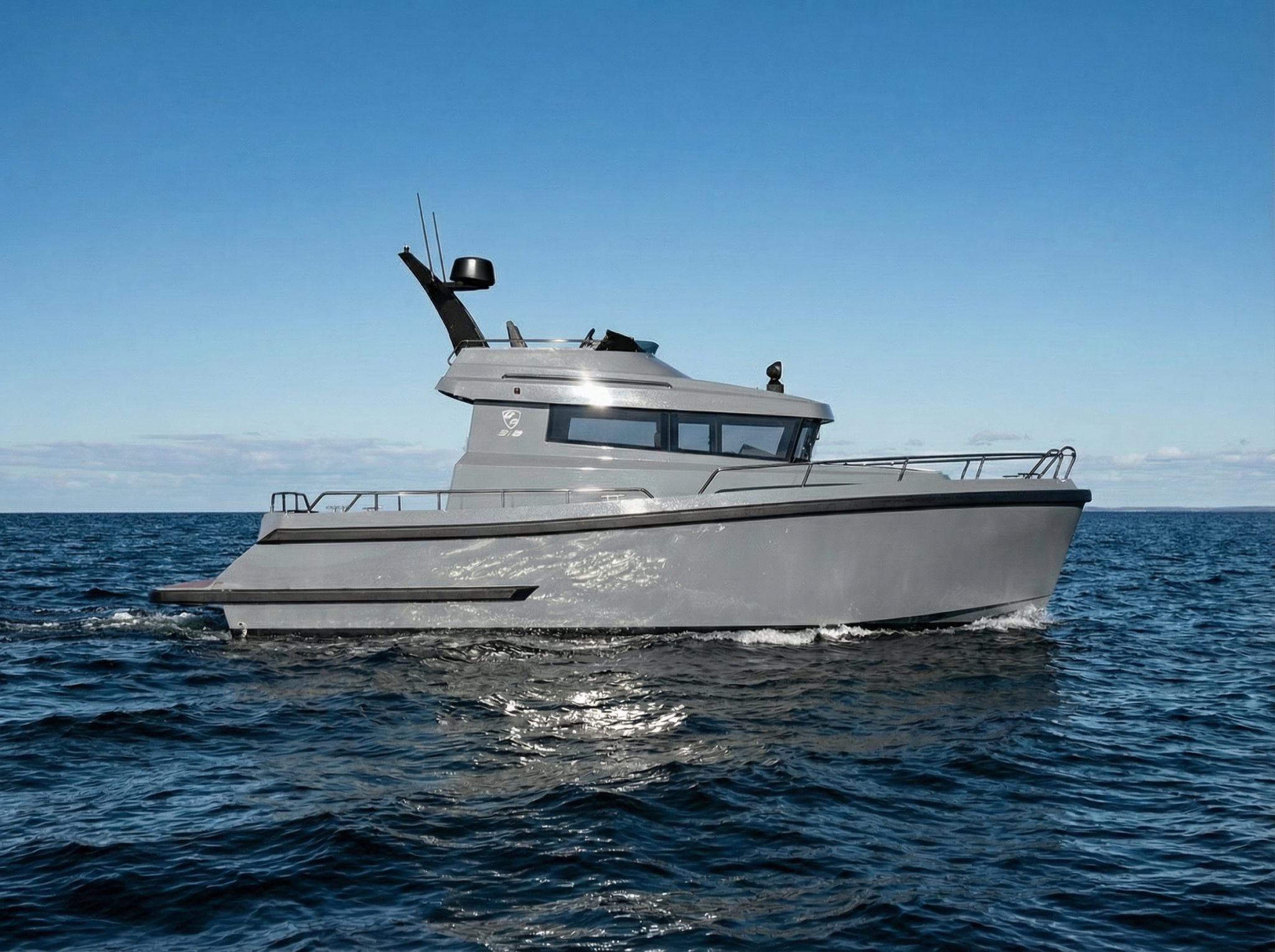 The wheelhouse and saloon are engineered for both protection and accessibility, featuring dual side doors to port and starboard. This ensures safe, efficient movement on deck in all weather conditions and enhances the vessel’s practicality during docking and offshore operation.